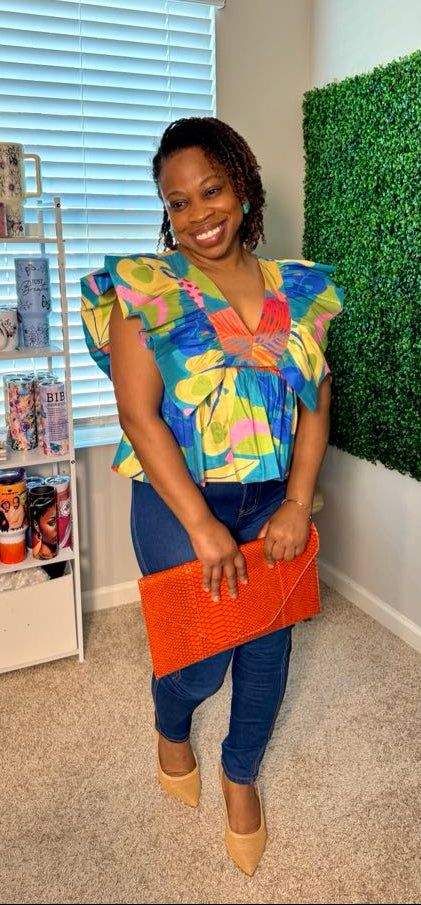 Experience the unique beauty of this one-of-a-kind top! Featuring an intricate design draped over an elastic bodice, with a flattering flare at the waist. This top will definitely turn heads wherever you go!